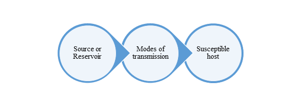 The transmission of communicable diseases involves the transfer of pathogens from the reservoir/source of infection to susceptible hosts. Fundamentally, there are three links in the chain of transmission.